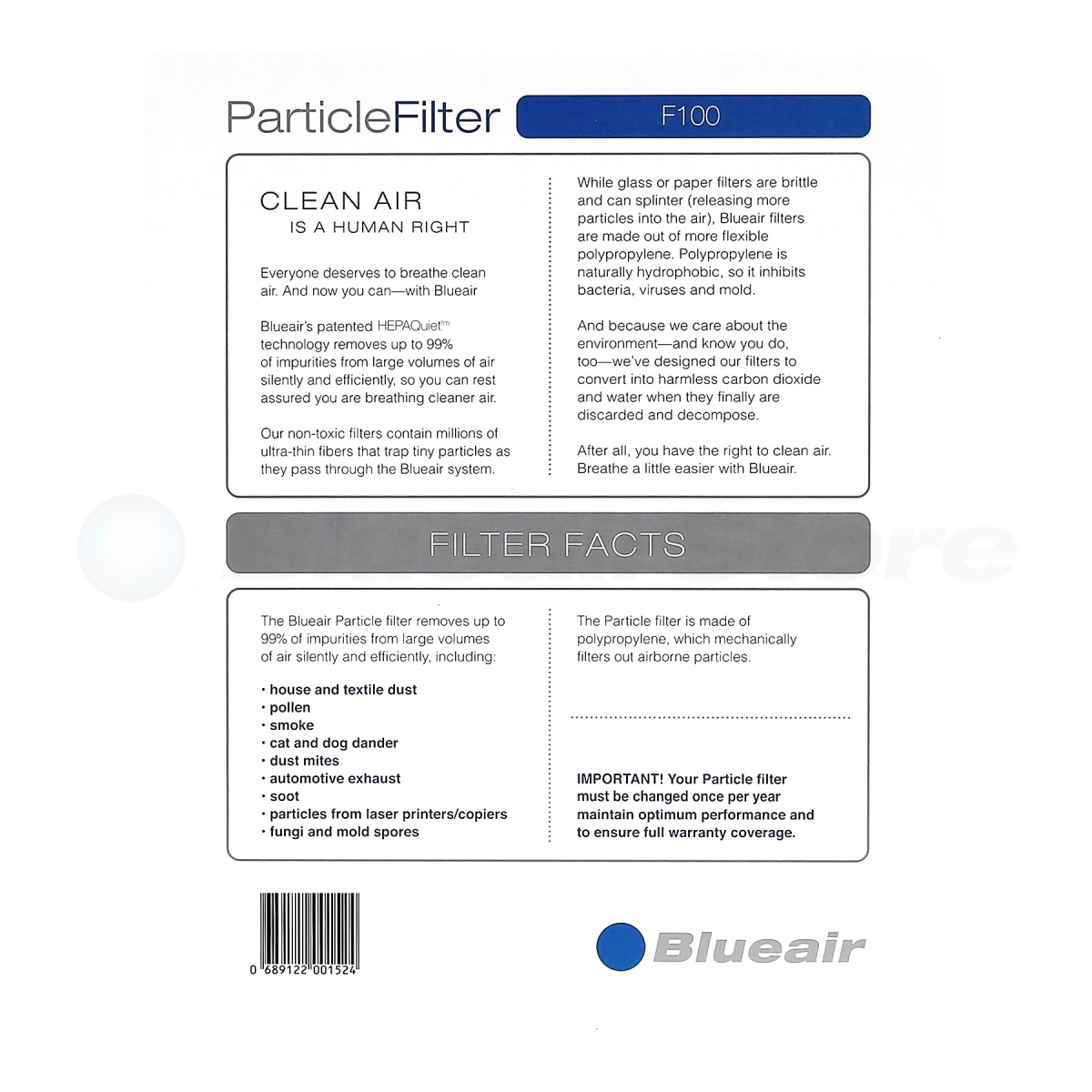 One complete filter change for Blueair 100 Series Air Purifiers (model numbers that begin with a 1).