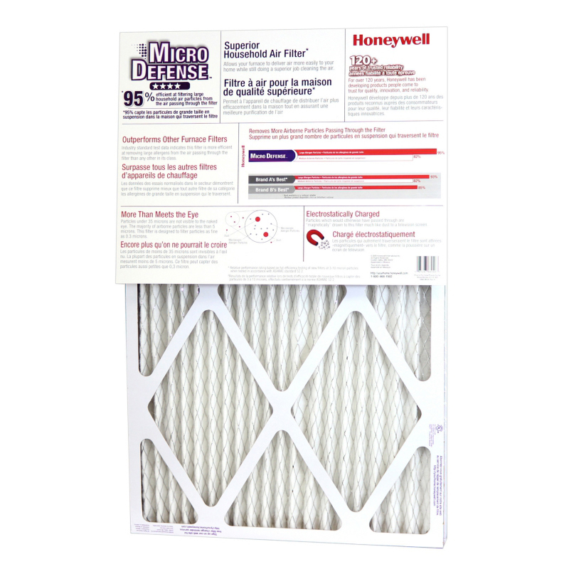 Industry standard test data indicates this electrostatically charged filter is more efficient at removing large allergens (including pollen, household dust, airborne dust mite debris, mold spores, common allergens, and carpet fibers) from the air passing through the filter than any other in its class.