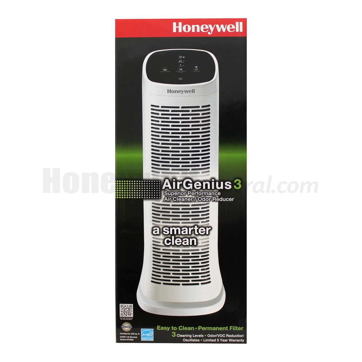 The Energy Star-rated Honeywell/Kaz AirGenius 3 Air Cleaner and Odor Remover, model HFD-300, captures up to 99.9% of ultra fine particles as small as 0.3 microns, including smoke, dust, pollen, mold spores and pet dander. Also included are two prefilters, one permanent and one odor reducing. It's contemporary iPhone® style touchscreen control panel makes it easy to use and features 3 cleaning levels and an electronic indicator to tell you when to clean the filter.(The filters are permanent and never need replacing; you can clean them by rinsing them in water!)