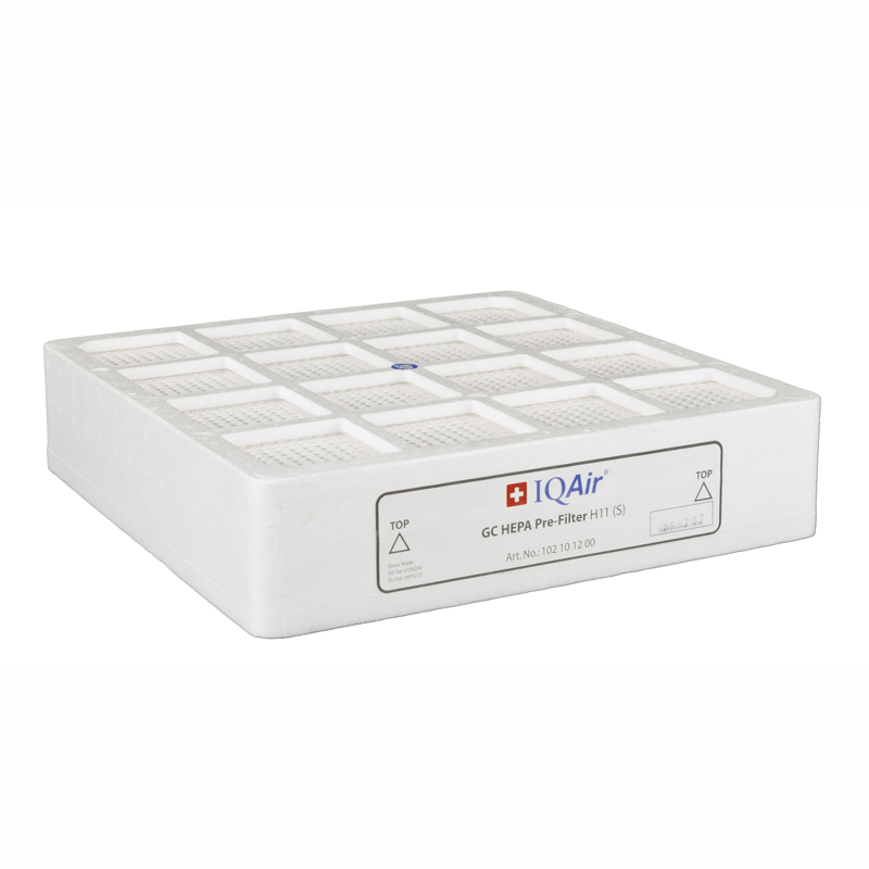 IQAir H-11 Pre-Filters last up to 18 months and capture smoke, mold spores and other allergens, and bacteria and viruses. IQAir H-11 Pre-Filters are HEPA filters, certified at ≥ 99% efficiency for particles as small as 0.3 microns.