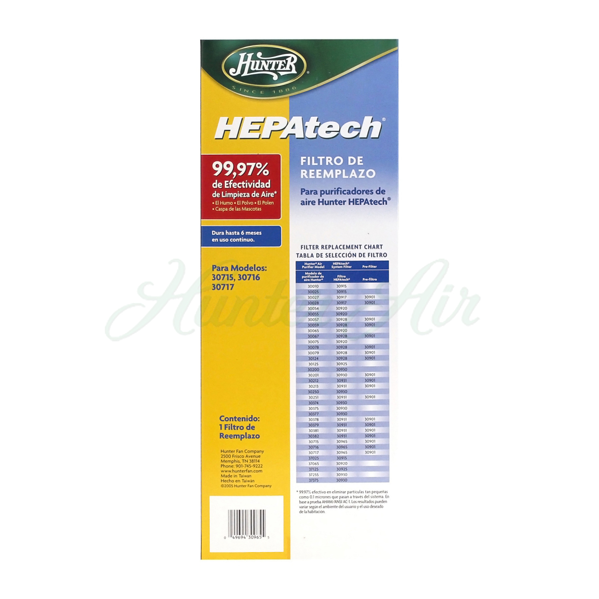 30965 For the best performance, replace your filter every 6 months. HEPAtech Filters are permanently charged electrostatic filters that effectively capture 99. 97% of particles as small as 0. 3 micron in size.