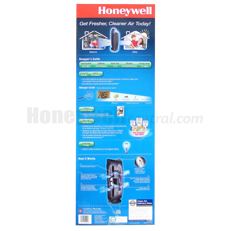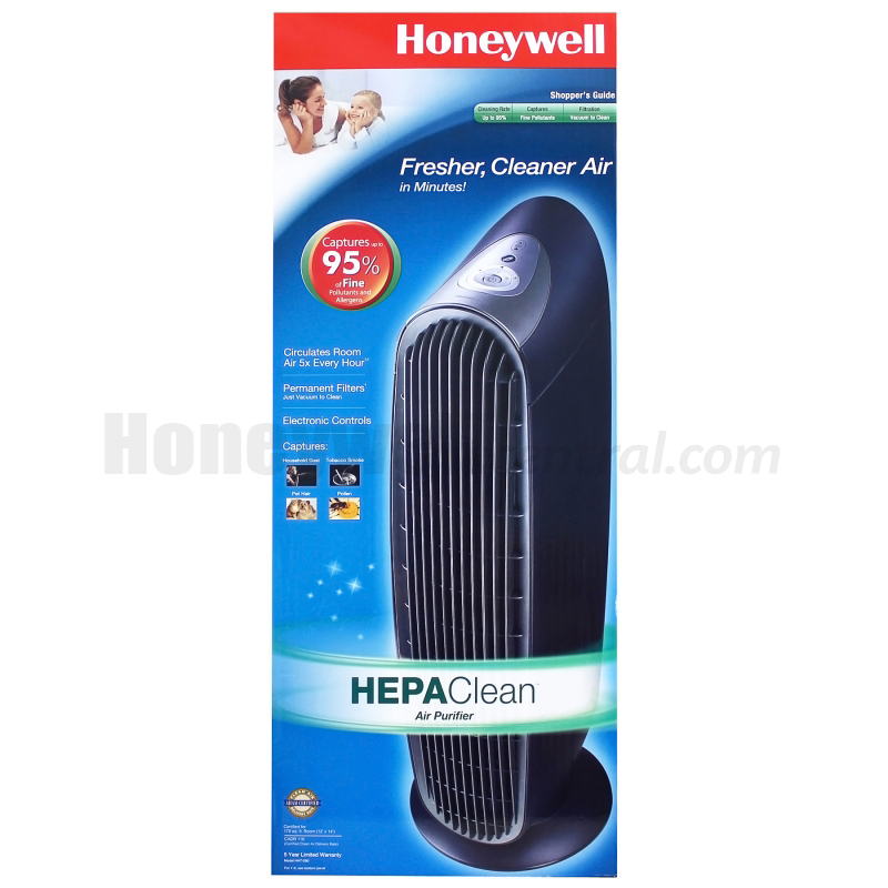 HHT-090 The Honeywell/Kaz HEPAClean® Tower Air Purifier, model HHT-090, is a great all-around purifier. The HEPAClean® filter captures up to 95% of fine airborne particles such as dust, pollen, smoke, mold spores & pet dander; the durable HEPA-type filters can be vacuumed clean to extend their life, or replaced every 6 months. It comes with a permanent, washable pre-filter, but if you need extra odor protection, it also works with the odor-capturing pre-filter HRF-B1.