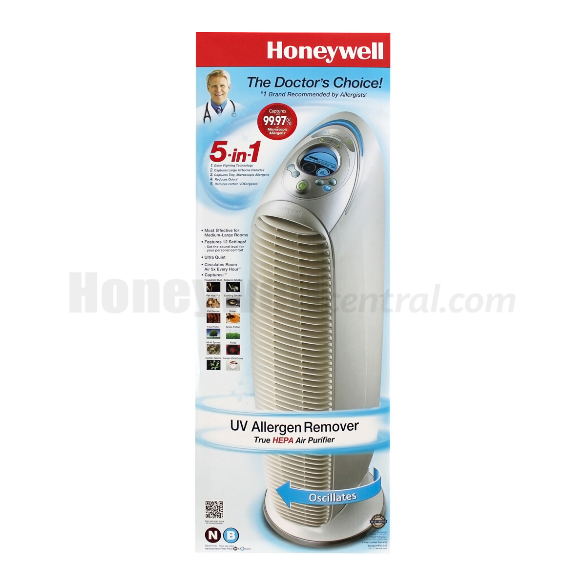 HPA-245 3 microns, and is laboratory proven to reduce certain germs in your air. 97% of microscopic allergens, down to 0. The Honeywell/Kaz True HEPA 5-in-1 Tower Purifier, model HPA-245, is the #1 brand recommended by allergists! The True HEPA filter captures up to 99.