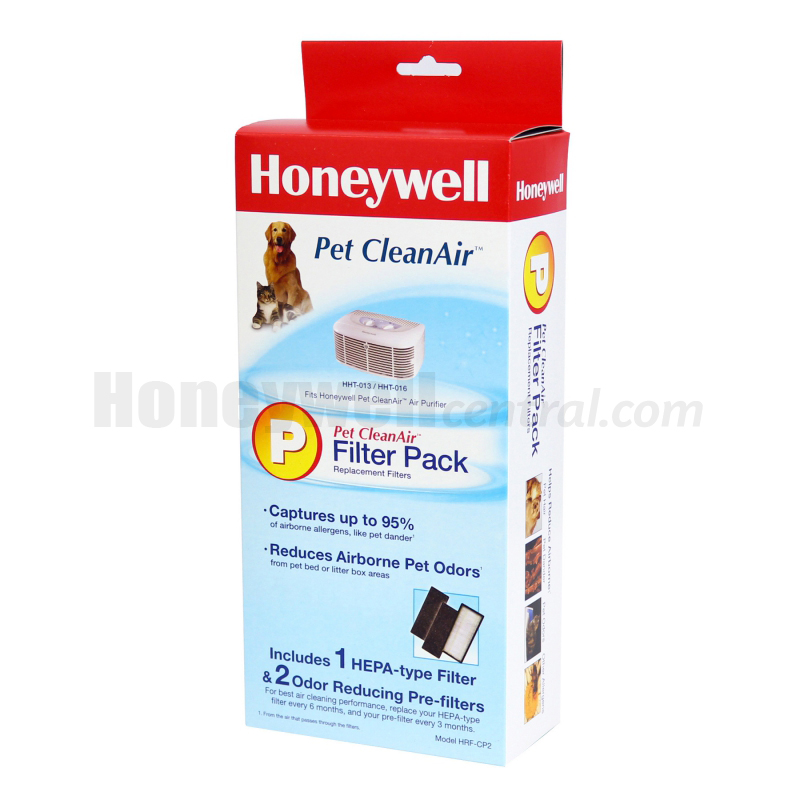 The HRF-CP2 Combo Pack includes one 95% efficient HEPA-type filter and 2 premium odor-reducing pre-filters, enough filters for 6 months of use. The Honeywell/Kaz Pet CleanAir™ Replacement Filter Combo Pack, HRF-CP2, is designed specifically for Honeywell Pet CleanAir purifiers (HHT-012 & HHT-016). These filters capture pet dander and allergens and help reduce pet odors.