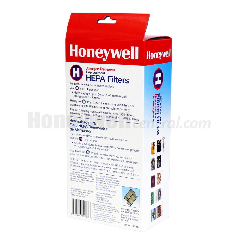 HRF-H2 For optimal performance, replace once a year. 3 microns. The Honeywell/Kaz True HEPA Replacement Filter, HRF-H2, helps to capture 99. 97% of microscopic allergens such as mold spores, pollen, dust, smoke, and pet dander as small as 0.